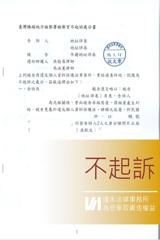 租屋糾紛發文公評,涉嫌違反個人資料保護法及刑法加重誹謗罪,律師舉證維護合法權益獲不起訴處分